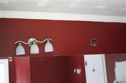 Welp, we made it worse, by taking everything off the walls, patching but not painting the walls, removing one light fixture, and letting it sit like this for, oh… two years or so.